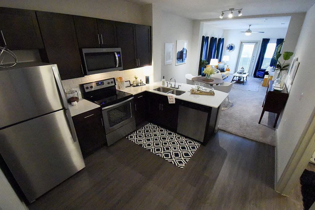 A new chapter of elevated comfort begins as you step inside our gates and see the resort-style recreational spaces. You will love to relax by the swimming pool and have a beverage in the outdoor seating area after a long day. Equally exciting is the social lounge with open workstations, a coffee bar, and the entertainment facilities such as the ping-pong table. We provide Wellbeats virtual fitness classes and a yoga and spin studio so you can be fully in charge of your workout routine. Your furry friends are welcome, too, especially at the dog park and the dog washing station. Our apartments in south Austin will meet your every expectation of upscale living. They come in one, two, and three-bedroom open layouts that give you plenty of space to make them yours. Featuring a Dwelo in-home technology package, you have a world of comfort at your fingertips: you can activate the locks, the thermostats, and the lighting with a tap on your phone. Besides, all the units come with stainless steel appliances, designer cabinetry, and sophisticated granite color schemes. For more elbow room, you can opt for apartments that have oversized patios and backyard spaces. Don’t pass the opportunity to live in a community that redefines high-end living. Call today to book a tour of our apartments for rent in south Austin! Apartment amenities: Dwelo In-Home Technology Package Includes: Smart Thermostats, Kwikset smart locks on front doors, Z-Wave smart lighting Sealed concrete flooring Designer cabinet and granite color schemes Stainless steel appliances Stand up showers in Select Homes Garden tubs in Select Homes Oversized patios in Select Homes Backyard space in Select Homes Services: Spacious/fenced small + large dog park Dog wash station WELLBEATS virtual fitness classes Yoga and spin studio Outdoor seating with lounge and TV Social lounge with open workstations, entertainment, and coffee bar Mail Station with 24-hour Parcel Locker Access Outdoor pool EV Charging Stations 100% Smoke Free Community On-Demand Concierge Service