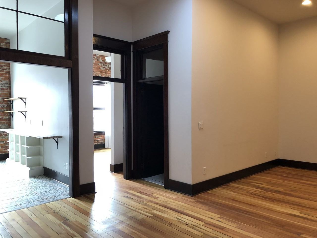 | 112 E. First Street - Unit B | 1 bed | 1 bath | Downtown Historic Apartment - Step back into the past without leaving your modern amenities behind. One bedroom apartment with exposed brick in the 1910 Historical Kinney Skinner Building, 2nd floor walk up, in the heart of downtown Cle Elum. Located only 1 hour from Seattle or 20 or less minutes to slopes and beautiful outdoors. The Hotel Royal space has been fully rebuilt into two apartments and brought into the 21st century. Refinished original fir wood floors plus new tile in kitchen and bath. Quartz countertop in an updated, vintage styled kitchen that includes full sized high end stainless steel, refrigerator, gas range and dishwasher. Unit includes an undercounter combo washer/dryer in the kitchen and a tankless water heater. Zoned heat pump heating/cooling and an additional heat cadet in the bathroom that has a tiled tub/shower. Bathroom sink is one of eight sinks originally used in the hotel. Living/dining area includes a good sized closet at the entry and a large skylight tube to give additional natural light. LED lighting, Video front (main street level doorway) access doorbell, plus peephole on apartment door, interior Cat6A and cable lines installed. Original double hung picture windows have been fitted with double pane glass for better insulation. Original 1910 unpainted fir, transom doors, windows and trim are reused inside space. No Smoking/No cats. Some small dogs upon owner approval. |