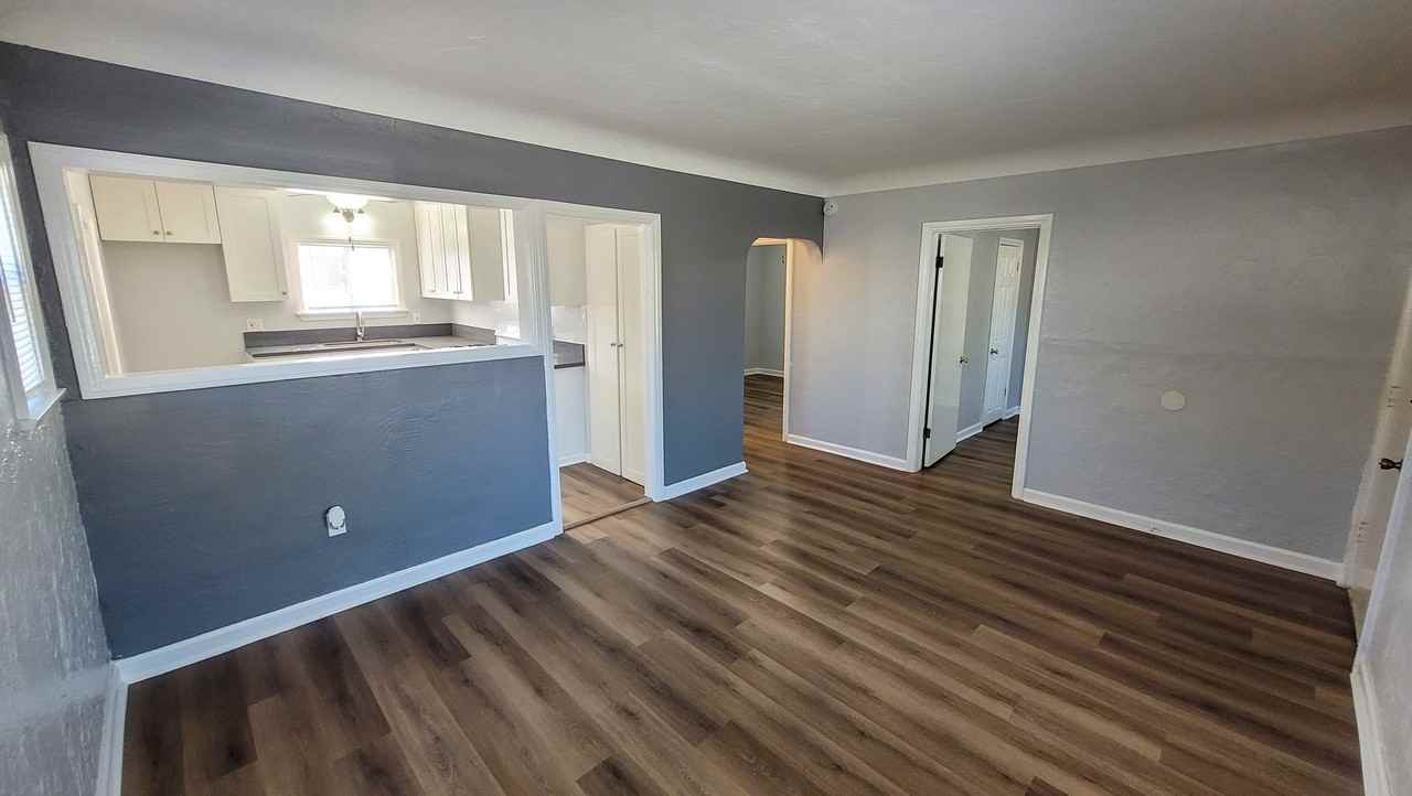 - Wood and tile flooring throughout