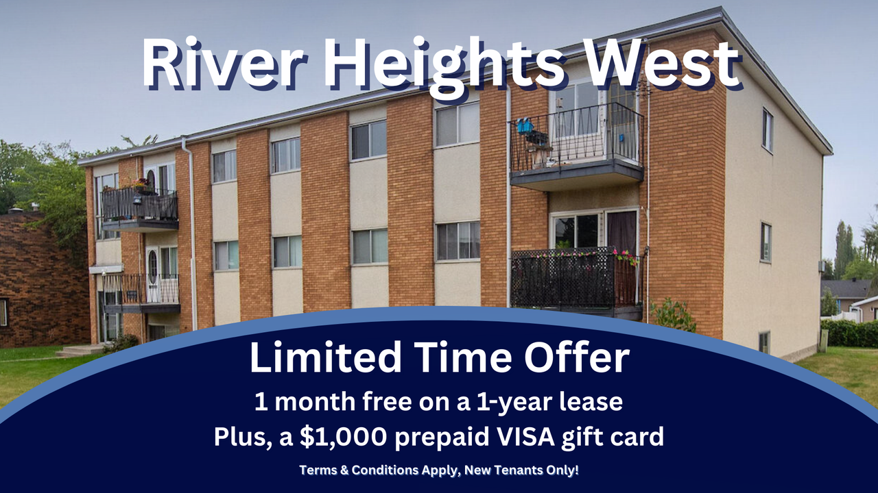 Limited-Time Offer: Receive 1 month free on a 1-year lease, plus a $1,000 prepaid Visa gift card. Conditions apply. New tenants only. Welcome to River Heights West, a well-kept low-rise apartment community in Edmonton’s Rundle Heights. Our spacious suites are designed with comfort and practicality in mind, featuring bright living areas, in-suite storage, and private balconies in select homes. Rent includes heat and water, plus an energized surface parking stall for your convenience. On-site laundry and professional management ensure stress-free living. River Heights West offers excellent value in a peaceful, residential setting.