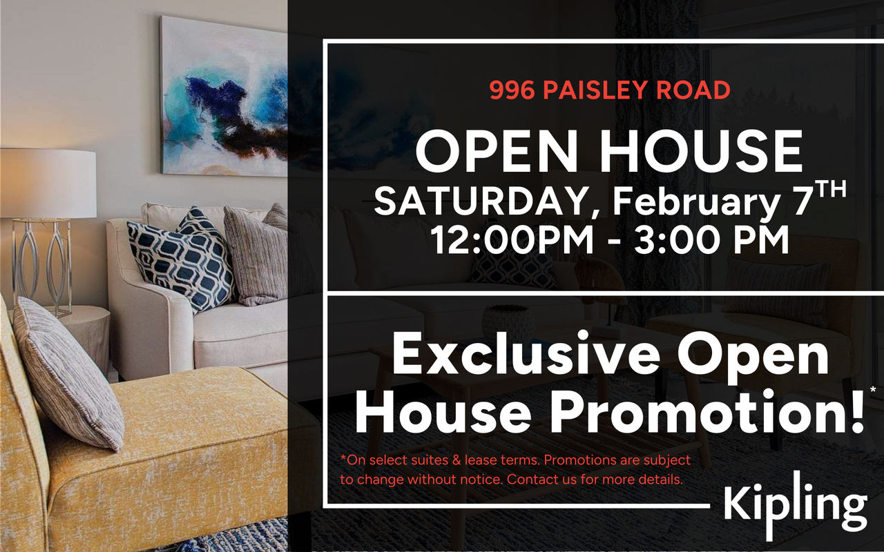 Open House Saturday February 7th from 12:00pm - 3:00 pm. Exclusive Open House Promotion!* Welcome to 996 Paisley Rd, part of the Paisley Square rental community in Guelph's west end. This modern low-rise offers bright, open-concept suites with in-suite laundry, stainless steel appliances, and private balconies in select units. Enjoy convenient living steps from shopping, parks, and transit, with Costco, Zehrs, and the West End Community Centre just minutes away. With on-site parking, secure entry, and professional management, 996 Paisley Rd combines modern comfort with a relaxed, community-oriented atmosphere. *1 bedroom only. Promotions are subject to change without notice. Contact us for more details. Offer for new residents only