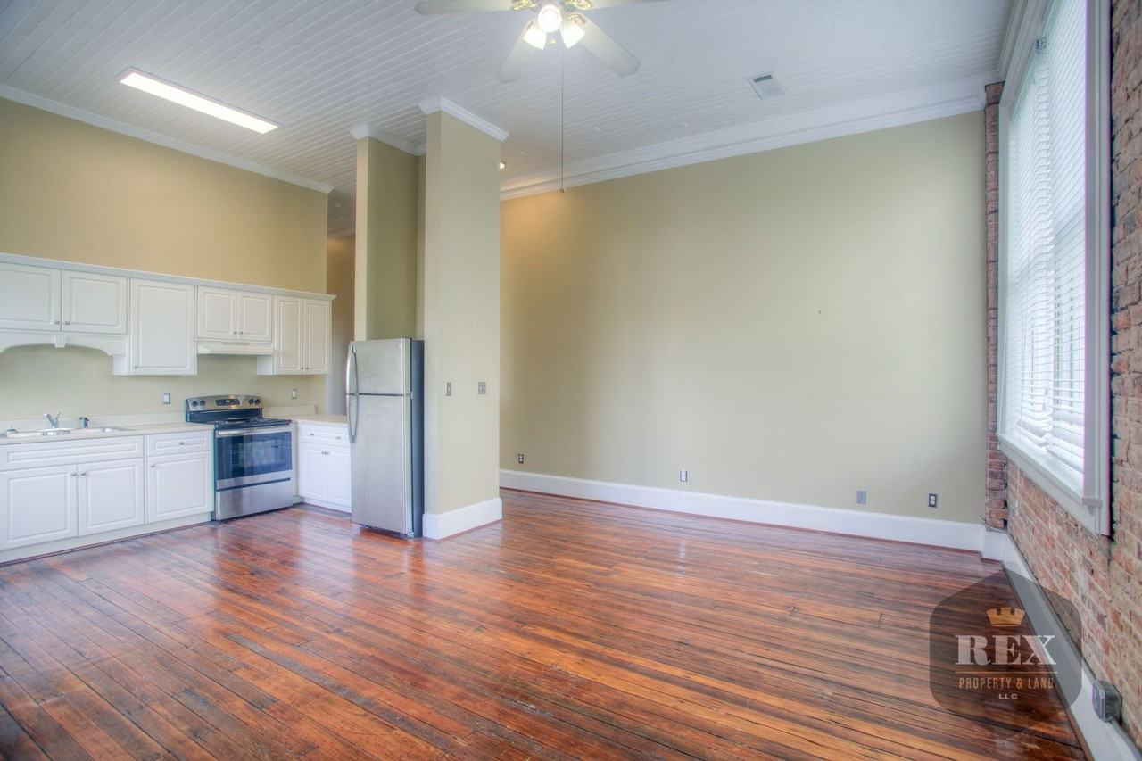 Spacious 1 bedroom apartment with exposed brick walls located in the heart of downtown Augusta right on Broad St! Perfect for Professionals, Medical College of Georgia / Augusta University(MCG, AU) students & staff, Fort Eisenhower military, Savannah River Site and Plant Vogtle employees & contractors. Spacious Kitchen and living room with all new stainless steel appliances. Large Windows with Tons of Natural Light Energy-efficient central heat & air Maintenance Coverage 24/7/365 This rental rate applies to new tenants only! Application fee: $55, non-refundable Minimum credit score of 650. Security deposit: $600 $25/month water conservation fee Lease quoted: Will end May-July; 12 month minimum Renter's insurance required Pet Policy: $200 Pet Fee Weight Limit 20 pounds Pet rent $10 for Dogs, $5 for cats Breed Restrictions Apply Sorry, no smoking on our properties! The information above has been obtained from sources believed reliable. While we do not doubt its accuracy we have not verified it and make no guarantee, warranty or representation about it. It is your responsibility to independently confirm its accuracy and completeness. Any projections, opinions, assumptions, or estimates used are for example only and do not represent the current or future performance of the property. You should conduct a careful, independent investigation of the property to determine to your satisfaction the suitability of the property for your needs. Rex Property & Land, LLC, Augusta, GA - Since 1985 www RexGroup com 706-722-4962