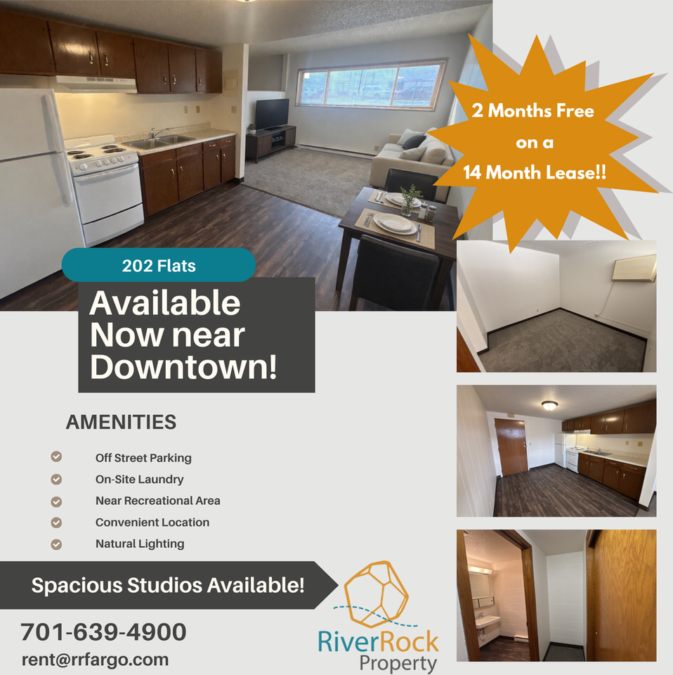 | 0BR/1.0BA | Studio | 1 bath | 500 sqft | $650 /mo | 6 units available | This studio apartment offers comfortable, efficient living at an excellent value. Designed to make the most of its square footage, the open layout provides flexibility for arranging your living, sleeping, and dining areas to suit your personal style. Rent is $650 per month, and for a limited time, this unit qualifies for 2 months free with a 14-month lease, offering substantial savings over the course of your stay. This leasing special makes it a strong opportunity for anyone seeking budget-friendly housing without compromising on quality. Whether you prefer a minimalist setup or a more personalized, cozy feel, the open design allows you to create a space that works best for you. The building also offers convenient on-site card-operated laundry facilities, making day-to-day living even easier. Cats and small dogs are welcome with applicable fees, making this a pet-friendly option at a competitive price point. If you're looking for an affordable studio with a limited-time leasing incentive, this unit is ready to welcome you home. Schedule your tour today! River Rock Property 701-639-4900 **** *Please note: Images may not fully represent the unit advertised* |