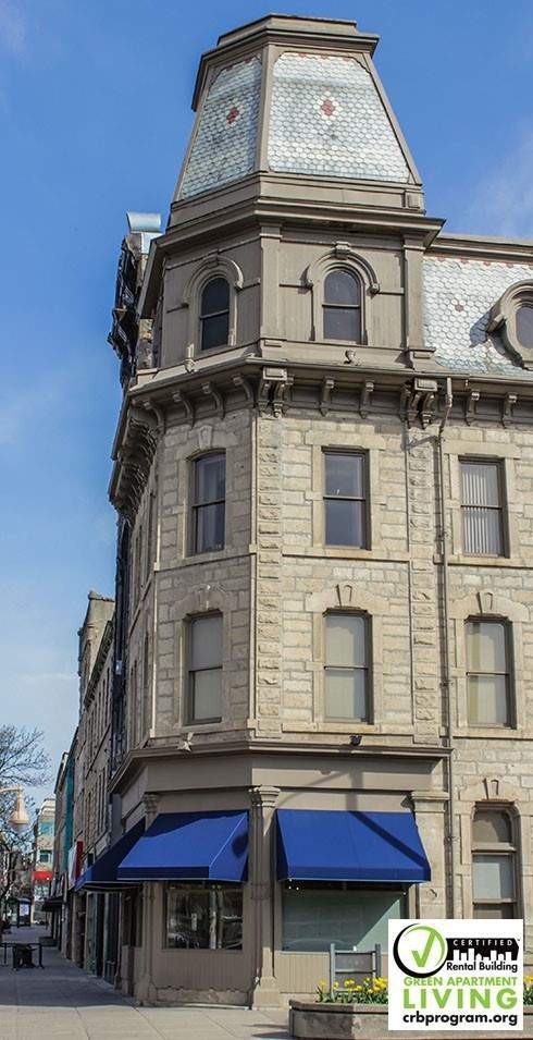 The Sovereign, also known as the Petrie Kelly Building, is a visual anchor for the eye right in the center of downtown Guelph. Upscale interiors are easily complemented by the enviable architecture and the views of the City Hall. A designated heritage building by the City of Guelph, The Sovereign is 137 years old and is the only industry-certified rental building in Guelph to offer unique loft-like apartments - just one of its many appeals. Live in downtown Guelph in a historically & architecturally significant heritage building! Completed in 1882, this was the site of the Form Independent Order of Odd Fellows' meeting hall. The third floor exhibits original hand-painted ceilings (not in residential areas). Built on the old site of the old Great Western Hotel. We're situated within walking distance to these fantastic amenities: walking trails, Speed River, River Run Center, specialty shops, restaurants, shopping boutiques, banks, city hall and public transit: buses, cabs & the train station. Our residents enjoy the elegant, 10' high ceilings, ornate ceiling-high windows in 1 and 2 bedroom layouts. Laundry is included with the rent, along with 1 assigned parking space and central vacuum. Owned and professionally managed by Williams & McDaniel Property Management, so you can rest assured that your concerns will be addressed quickly and efficiently with the high quality of customer service that you will come to know and enjoy. Please note: Square footage and pricing varies per unit. Try our online room planning tool!