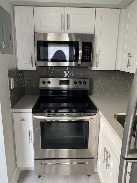 1 bedroom 1 bath unit completely remodeled. New wood laminate floors, fixtures, freshly painted, new impact windows and doors, new kitchen appliances, central air. Pet friendly building. Private backyard/patio.