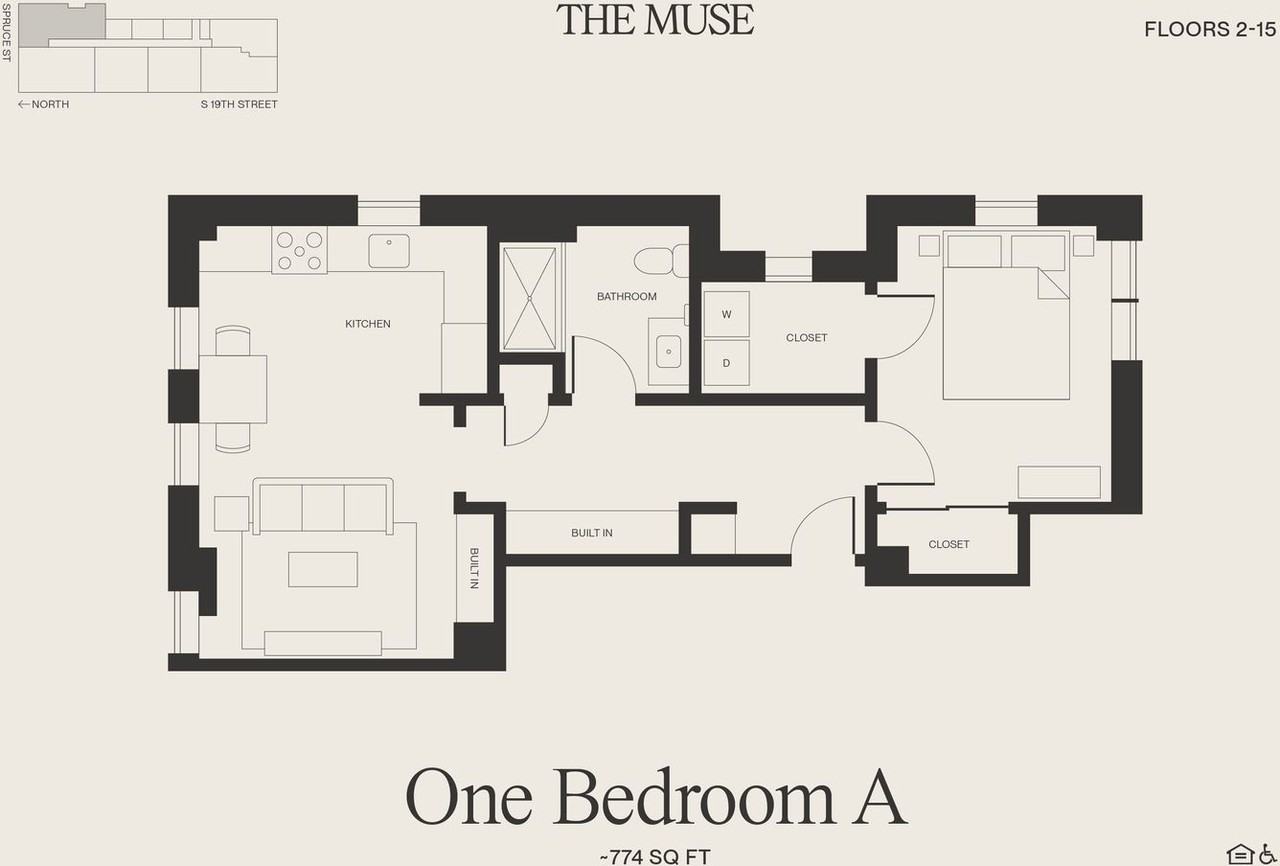 | One Bedroom | 1 bed | 1 bath | 774 sqft | $2,920–$3,020 /mo | 2 units available | At The Muse, every detail is thoughtfully considered for city living as it should be. Nestled just south of Rittenhouse Square where you can catch everything from outdoor performances to farmers' markets, the neighborhood is a pedestrian’s paradise. With only six residences per floor and unobstructed sunset views, The Muse isn't just a building, it's everyday living, enhanced. Experience a community designed for convenience and connection, with smart access control and a well-equipped fitness studio. A pet friendly residence with a rooftop terrace and resident lounge provides the perfect setting for relaxation. Book a tour today, your new home awaits. |