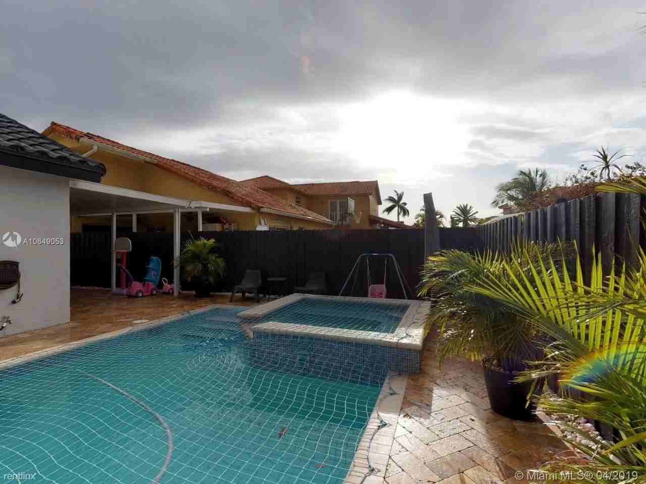 modern home in West Kendall for rent. Granite counters in the kitchen with stainless steel appliances. Genuine hard wood floors in the bedrooms and tile in the rest of the home. Updated baths. Full size washer and dryer in an interior laundry room not in the garage. Gorgeous backyard area with pool/spa, travertine