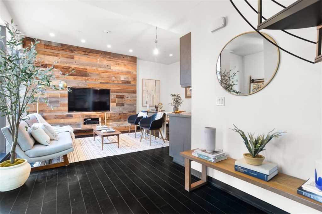 This stunning 1 bed, 1 bath, 920 sq ft two-story condo unit presents a bright, modern living with spectacular city views. One of the building?s rare two-level floor plans, this unit is filled with natural light and thoughtful design. The main level features floor-to-ceiling windows, a reclaimed wood media wall, in-unit laundry, recessed lighting, and seamless flooring throughout. The sleek kitchen includes stainless steel appliances, custom tile work, and contemporary finishes.Upstairs, the spacious primary suite includes a full en suite bathroom, multiple closets, storage solutions, breathtaking views, and a built-in projector screen with media system. One assigned parking space included. Urban living at its best!