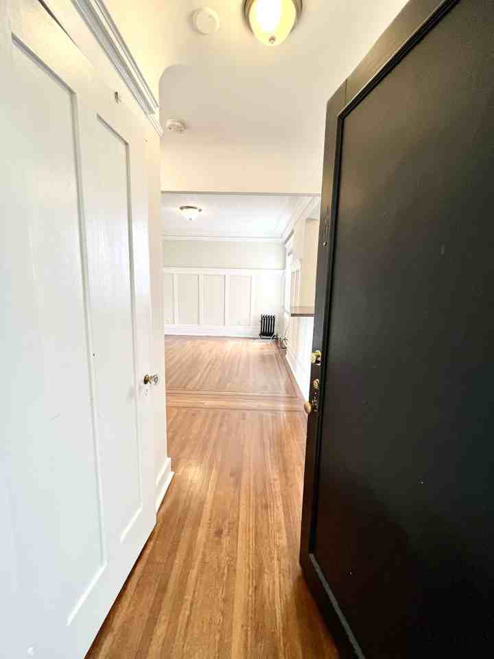 Top Floor 3 bedroom / 1 bathroom Quiet rear unit with double pane windows New kitchen with stainless steel appliances. Dishwasher, gas stove and Microwave Hood Remodeled bathroom Hardwood floors Just painted Washer and dryer on premise (coin or app) Large shared yard Landlord pays for garbage, water, and heat