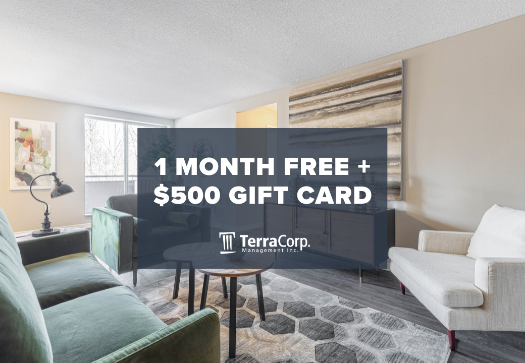 1 Month Free + $500 Laundry Gift Card Offer available on select suites when you sign a 13 month lease by March 1, 2026.