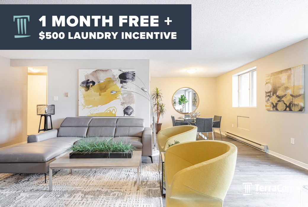 1 Month Free + $500 Laundry Incentive Offer available on select suites when you sign a 13-month lease by May 1, 2026. Select suites apply.