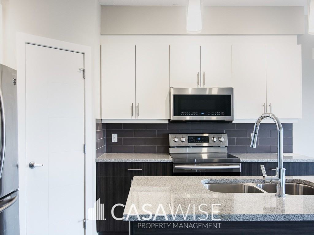 Enjoy living in this modern townhome! This gorgeous 3 bedroom, 2.5 bathrooms row townhouse offers a comfortable open floor plan. The kitchen has quartz countertops, high-end stainless steel appliances, modern cabinetry, and a pantry. The dining and living area has large windows that bring tons of light on the main floor. Stay warm and cozy with the modern fireplace in the living room. Beautiful laminate flooring in the kitchen and living areas, porcelain tile in the bathrooms and laundry room, carpet upstairs. Convenient upstairs laundry room and a bonus space perfect for a home office or tv room. The master bedroom comes with a large walk-in closet and an ensuite with a stand-up shower. 2 more good size bedrooms upstairs and the main bath. Double attached garage and long driveway. Deck and fully fenced backyard. Utilities, snow removal, and lawn maintenance are tenant responsibility. No Smoking No Pets PROFESSIONALLY MANAGED If interested, please provide us with your name, phone number, available times for viewings and a little background about you (when do you need the unit for, how many people would be living in the unit, etc.). Thank you!