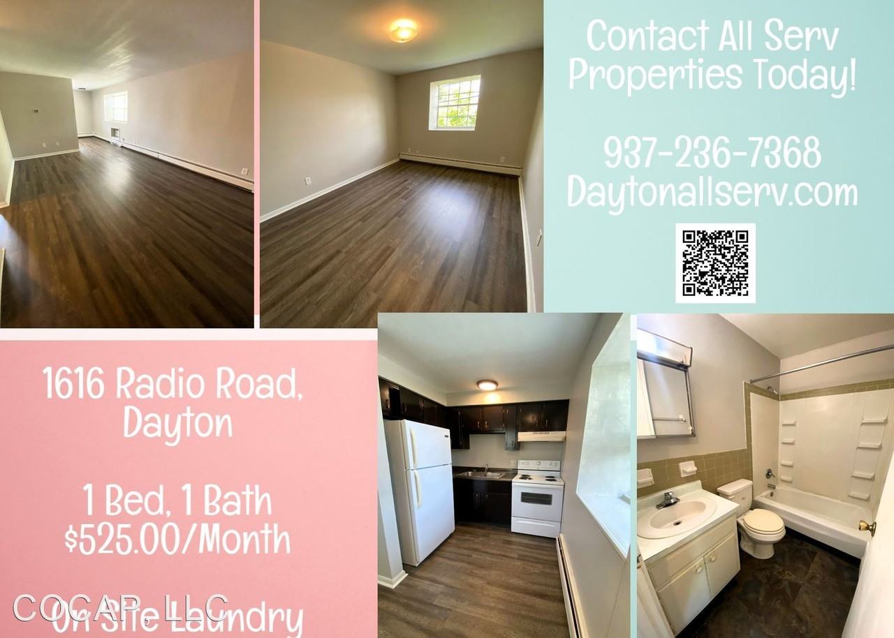 | 1616 Radio Rd Apt 4 | 1 bed | 1 bath | 546 sqft | Now Leasing: 1 Bed/1 Bath First Floor apartment with Laundry on Site! - **Photos of similar unit** Cozy 1 bedroom,1 bathroom first floor apartment in key-controlled building with off street parking & on site laundry facilities. Located in East Dayton, close to bus stop, Kroger, 35, WPAFB and Smithville Road. This unit is not pet friendly. $465/month with minimum 1 month security deposit. Utilities: Resident pays $50/month for water/trash/sewer, 10/month for laundry facilities, Electric held in residents name, and Resident pays $35/month for gas. Applicants are required to complete a rental application and authorize a $40 credit and background check. Call All Serv Properties at 937-236-7368. | ||