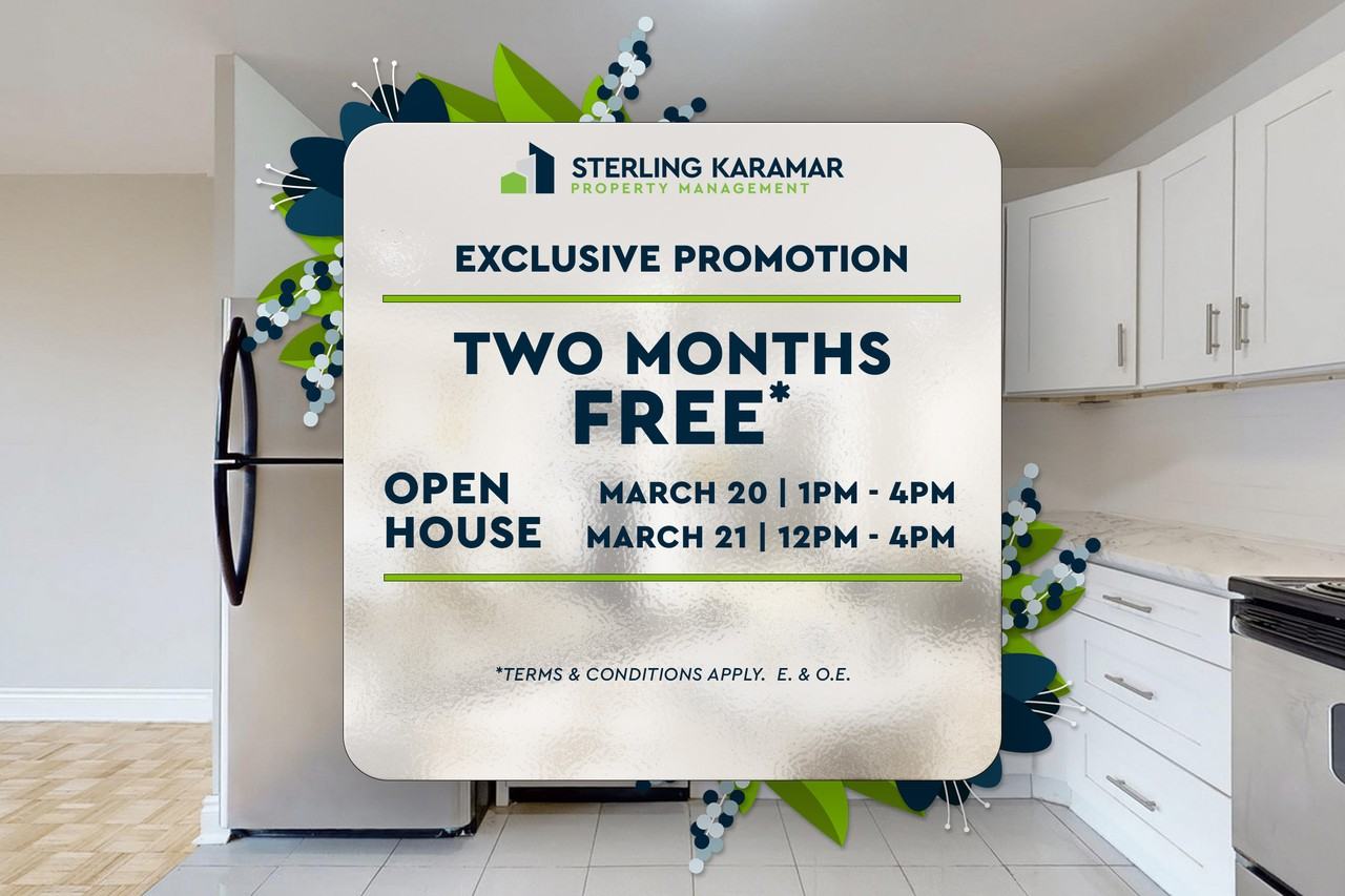 OPEN HOUSE | March 20 from 1:00 pm to 4:00 pm & March 21 from 12:00 pm to 4:00 pm These Oshawa apartments are located close to everything you need. Walk to schools, places of worship, and even the shopping centre. The suites have been completely renovated with brand new kitchens, bathrooms and light fixtures throughout. Parking Available. Rental Process We encourage you to schedule a personal showing with our leasing specialist who would be happy to safely tour you through amenities and available suites. Online Payments and Communications Property Vista resident portal is available to ensure the ease of rental payments, maintenance requests, and communication with property management – all accessible online from your personal device. *Pricing, availability, and incentives are subject to change. Conditions apply. Suite features may vary. Images and virtual tours may not reflect actual suite finishes. E. & O.E. ** Sterling Karamar Property Management is committed to providing an exceptional leasing experience. We do not request a fee to book a tour or a deposit to reserve a suite.