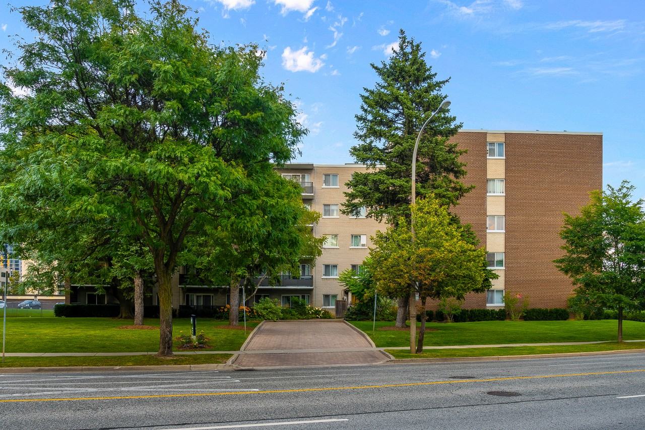 329 The West Mall has an outdoor pool, covered parking and plenty of green space with mature trees.