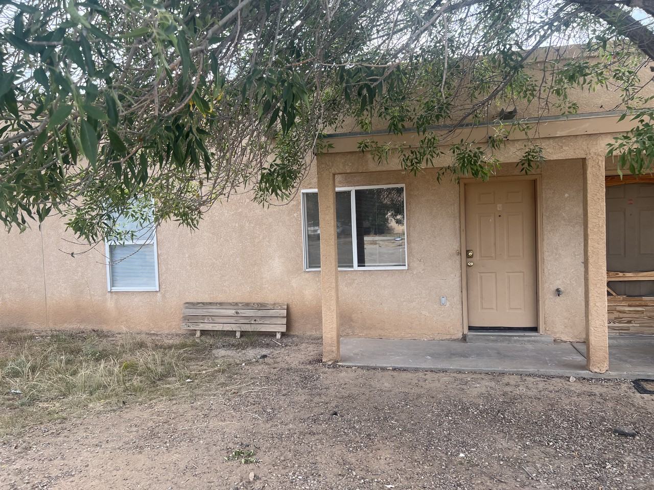Just remodeled two bedroom 1 bath end unit apartment in a fantastic Rio Rancho location. Country living with city conveniences at your fingertips. Immediate access out your back door to open space and just a quick drive to any amenity needed. Updated 2 bedroom apartment under new ownership and management with private backyard, new luxury vinyl plank flooring throughout, totally updated kitchen with new counters and and black appliances. Washer dryer hookups for full size set. Parking right in front of your door in a very quiet 4-plex at the end of a safe cul-de sac. Some photos may be of a similar unit in same complex.