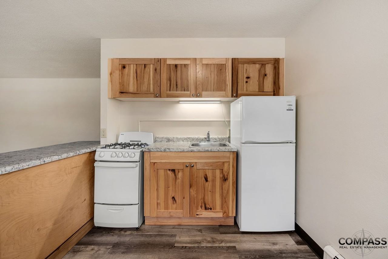 | Traditional Studio | Studio | 1 bath | 330 sqft | $745 /mo | 1 unit available | Retro-styled, downtown studio apartment home located in Eau Claire’s historic Third Ward district that is close to everything that downtown Eau Claire has to offer. This apartment includes onsite laundry, with the option to pay with coin or electronically. It is also small dog and cat friendly. To make it more convenient for you, each apartment includes heat, gas, water, sewer, trash/recycling, lawn care, and snow removal in the rent price! Applicants are required to complete a rental application and authorize a credit and background check. Online portal available with AppFolio Property Management software for online payments, maintenance request, and property communications. One month’s rent security deposit required. (countertops, appliances, and flooring may differ in certain units due to phase of upgrade) VISIT www compassmgt cc vacancies for more of our available apartments and APPLY today! In-person and virtual showings are available. APARTMENT APPLIANCES: • Gas Range • Refrigerator • Wall-Mounted Air Conditioner • Washer/Dryer On-Site GENERAL APARTMENT AMENITIES: • Smoke Free • Open Concept Floor Plan • Storage • Off Street Parking • Large Windows COMMUNITY AMENITIES: • Bike Storage & Parking • Located on Local Bus Route • Close to Downtown & Campus • Pet Friendly | |