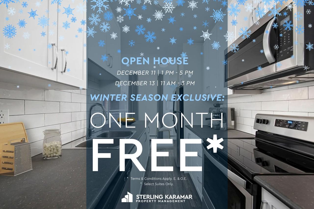Winter Exclusive | 1 Month Free on a 13-Month Lease!* (select units) Winter Exclusive | 1 Month Free on a 13-Month Lease!* (select units) *Terms & Conditions Apply.
