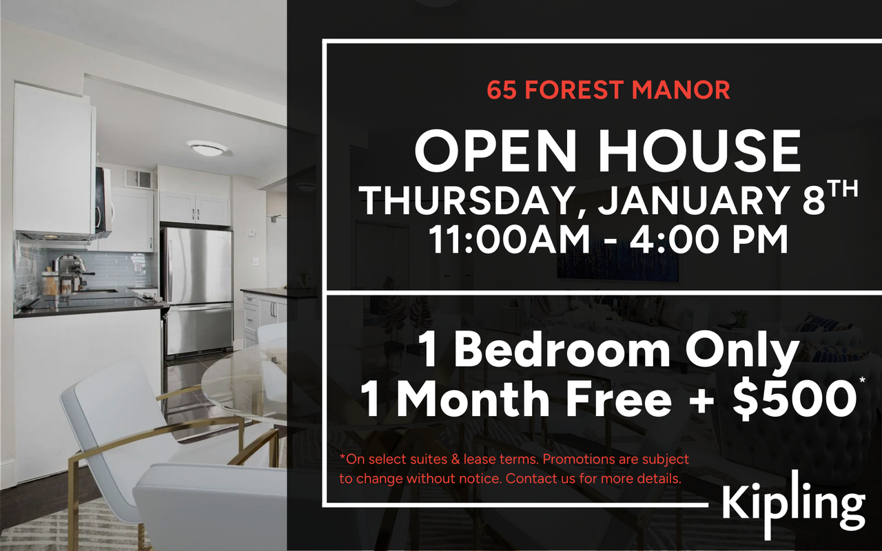 Open House Thursday January 8th from 11:00am-4:00pm. 1 bedroom only, 1 Month Free + $500 Located in North York, 65 Forest Manor Road offers fully renovated, spacious 1, 2, and 3-bedroom suites featuring open-concept kitchens with chrome accents, laminated countertops, new overmount sinks, and stainless steel appliances. Select units include dishwashers. Bathrooms are upgraded with new fixtures, mirrors, and vanities with laminate countertops. Residents enjoy a variety of amenities:On-site laundry facilitiesPet-friendly Community room for social gatheringsNo tenant/resident Parking Available at the momentOur prime location ensures you're close to essential services and leisure activities. FreshCo is within walking distance, Fairview Mall is a 6-minute drive away, Betty Sutherland Trail Park is a 6-minute drive, and Oriole GO Station is also a 6-minute drive. Residents are close to many parks, schools, and medical facilities and have easy access to public transit including TTC and Go transit.65 Forest Manor offers renovated spacious suites with open-concept kitchen which feature chrome accents, laminated countertops, and new over mount sinks. A stainless steel refrigerator, stove, and microwave are included in all units. Dishwashers are available in selected units. Bathrooms include upgraded fixtures, new mirrors, and new vanities with laminate countertops. The units are freshly painted with new tiles in bathrooms and brand new light and hardware fixtures. *On a 13-month lease. Promotions are subject to change without notice. Contact us for more details. Offer for new residents only
