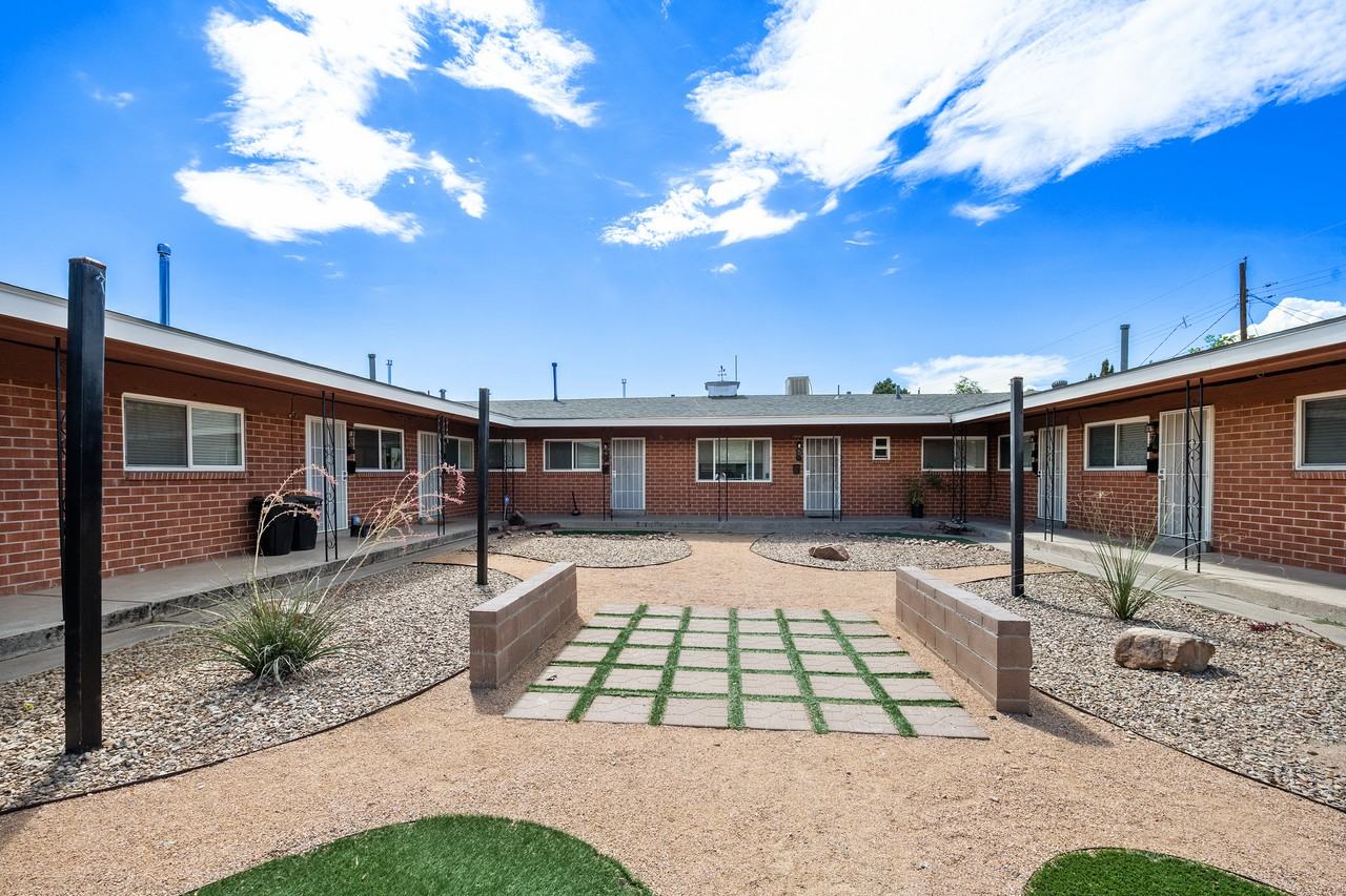 | Albuquerque, NM - Muti-Plex - $985.00 Available January 2026 | 1 bed | 1 bath | 650 sqft | $985 /mo | 1 unit available | Beautiful, fully renovated Courtyard Style 8-Plex in Nob Hill / South UNM. Unit # 4 is a Smart and pragmatic, 1 bedroom updated with top end finishes, quality and care. Large bedroom includes bonus closet space and new fixtures / ceiling fan. Completely renovated open Kitchen includes upgraded cabinets, quality black appliances, granite counters, and a spacious and flexible dining area. You'll also get easy off street parking, an all in one washer / dryer in the unit, quality luxury vinyl plank flooring throughout, and a beautiful common area courtyard with secured gated entry. Fantastic Ridge Crest location just 1 block to Burton Park, two blocks to one of ABQ's best coffee shops, with quick and easy access to Nob Hill, UNM, I-25, and Kirtland Air Force Base. |