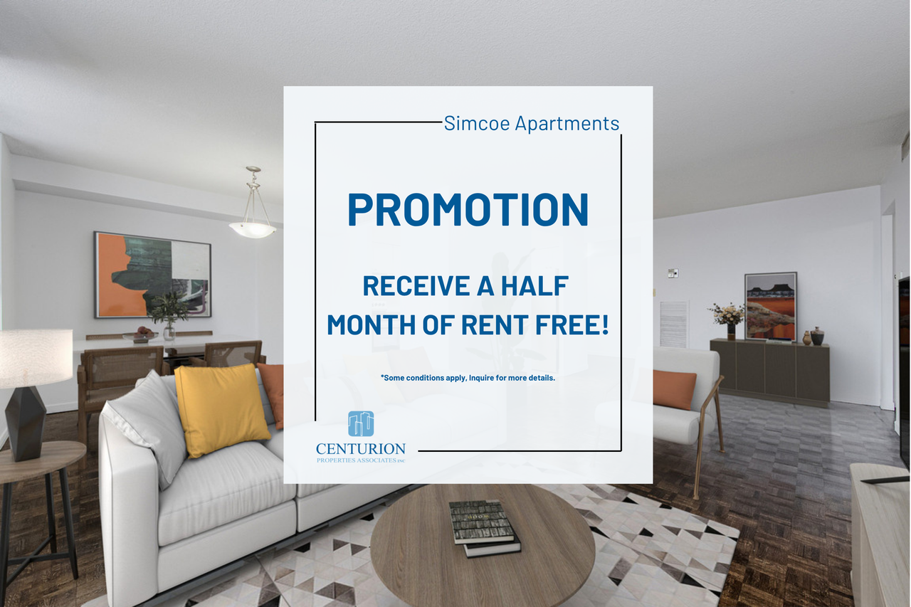 Simcoe Apartments is ideally situated near Lakeridge Health Centre and Oshawa Centre. Our spacious, renovated suites feature open-concept kitchens equipped with chrome accents, breakfast bars, laminate countertops, overmount sinks, and stylish tiled backsplashes. In select suites, you'll find upgraded bathrooms complete with modern fixtures, new mirrors, and vanities topped with laminate countertops. Experience comfort and style at Simcoe Apartments! PROMOTION: Receive a half month of rent free! *Some conditions apply, please inquire for more details. Looking for a future move-in date? Give us a call today to speak with one of our Customer Care Representatives to find out more! Large & Spacious Suites! From 857-1371sq *Please Inquire for details on size availability* Suites offer: - Modern kitchen with chrome accents, breakfast bar, laminate countertops and tiled backsplash - Stainless-steel refrigerator, stove, microwave, and dishwasher (select suites) - En-suite Laundry - Central air-conditioning Property offers: - Community room - Controlled access - Indoor and outdoor parking options - Visitor parking - Pet-friendly - Video Surveillance Your community offers: - Minutes to Lakeridge Health Centre, Oshawa Valley Botanical Gardens, and Oshawa Centre - Big box stores nearby - Close to parks, schools, and restaurants - Easy access to public transit and major highways Fees: *Hydro not included *Outdoor Parking: $85/month *Underground Parking: $100/month *Locker: $40/month Suite images shown represent standard unit finishes, which may differ between units. Suite layout varies.