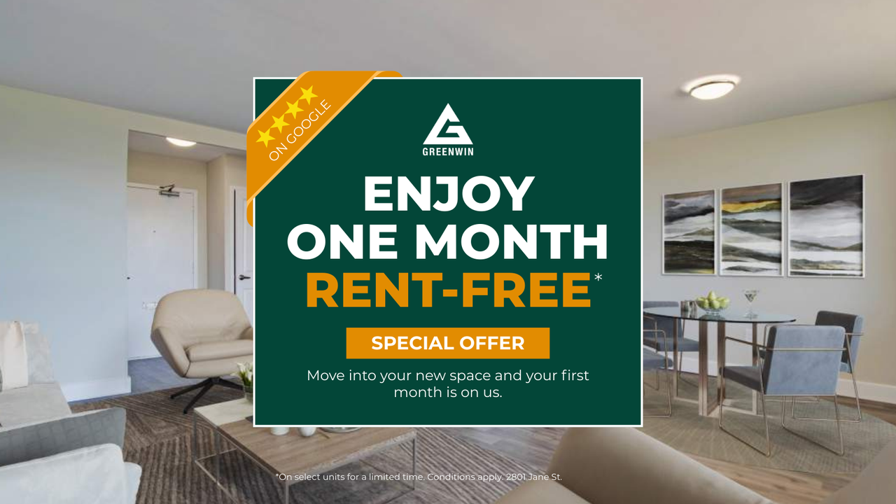 Welcome to 2801 Jane Street, a conveniently located mid-rise residence in the vibrant Jane and Sheppard area of North York. Just minutes from Downsview Park, this community offers excellent access to nature, while also being steps from everyday essentials—including grocery stores, restaurants, schools, and shopping. With TTC transit nearby and quick connections to Highways 400 and 401, commuting throughout the city is simple and efficient.Inside, our spacious 1, 2, and 3 bedroom suites are thoughtfully designed for both comfort and style. Each unit features updated laminate flooring in the living areas and bedrooms, complemented by stone-inspired ceramic tile in the kitchen. The kitchens are outfitted with elegant white cabinetry, self-closing drawers, and four stainless steel appliances, creating a modern and functional space for cooking and entertaining.2801 Jane Street is the perfect blend of convenience, style, and value—ideal for families, professionals, and anyone seeking comfort and connectivity in the heart of North York. Building Features: - Professional Property Management trained to ensure that your home is clean and safe while confined to your suite - Enhanced cleaning procedures in high traffic areas - Property Vista available at all properties for ease of rental payments, maintenance requests, and communication with Property Management - all accessible from your personal device or online - Heat included, water and hydro extra based on usage - Pay your rent and submit maintenance requests online using **myGreenwin** - On-site laundry facility - Pet friendly - On-site management - Easy access to major highways including Highway 400 and 401 - Grocery, restaurants, shopping, and schools within minutes - Public transit within walking distance - Jane and Finch mall a short walk away 2801 Jane St. is a short walk to Jane and Finch Mall and York University. Suite Details: - Thorough cleaning of every suite before move-in - Large suite layouts featured - Suites feature an open-concept kitchen with modern finishes including chrome accents, breakfast bars, laminate countertops and tiled backsplash - Stainless steel appliances including fridge, stove, microwave, and dishwasher - Upgraded bathrooms with new fixtures, mirror, and vanity - Newly finished flooring throughout the suite - New tiles in the kitchen and bathroom Utilities Included: - Heat