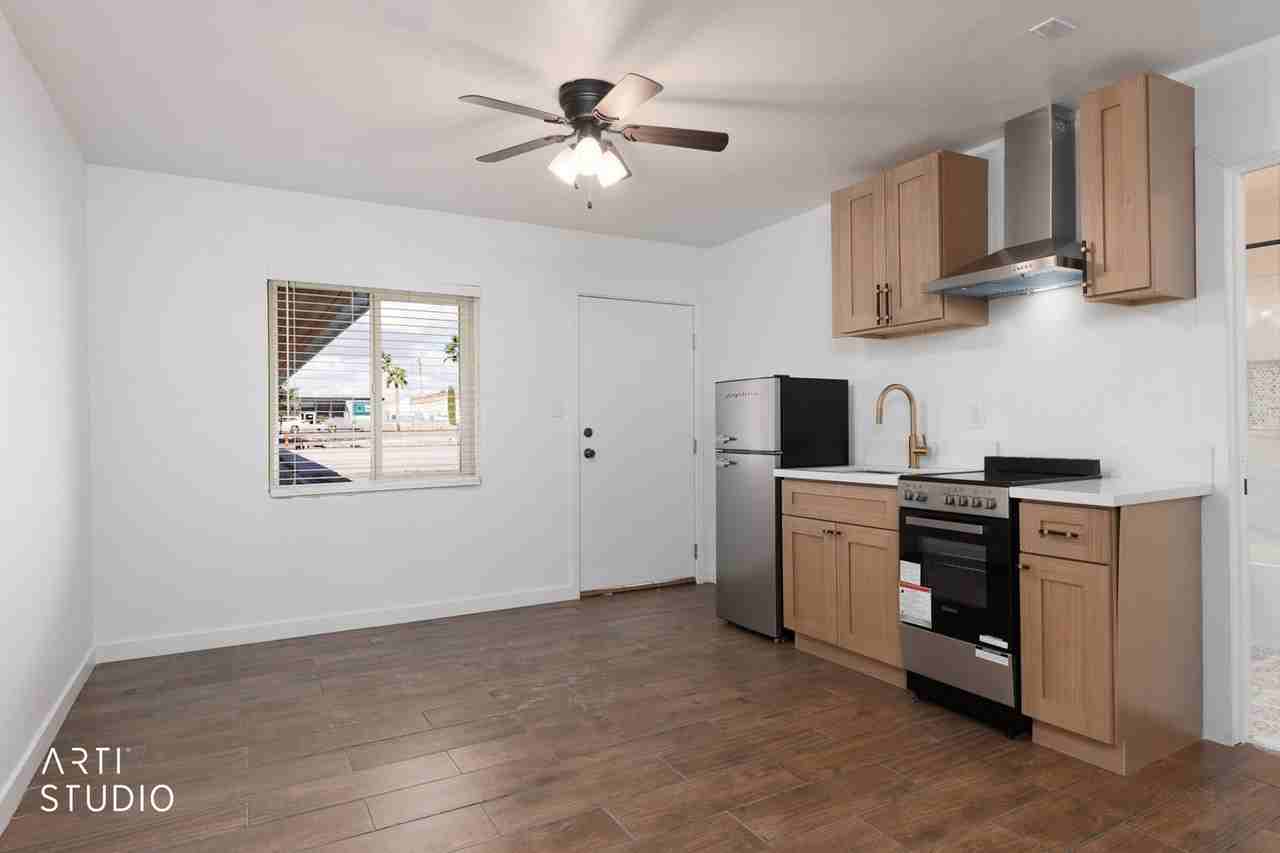 Be the first to live in these beautifully renovated studio apartments featuring stylish, modern upgrades throughout. Each unit includes brand new appliance, new cabinetry with elegant gold hardware, stunning gold kitchen and bathroom faucets, deep modern kitchen sink, beautifully tiled bathtub/shower surround, new toilets and bathtubs and fresh pain throughout. The built-in closet system offers shelving, drawers, and hanging space. These studios combine functionality with upscale touches, creating a bright and modern living space you'll love coming home to. Flat $37 utility fee includes: water, trash, sewer, electricity, and basic cable — making budgeting simple and stress-free. Rent: $950 per month Call 702-346-7930 for more information Apply online at erabrokers. com Units will be ready soon, and we’ve started a waiting list — don’t miss out!