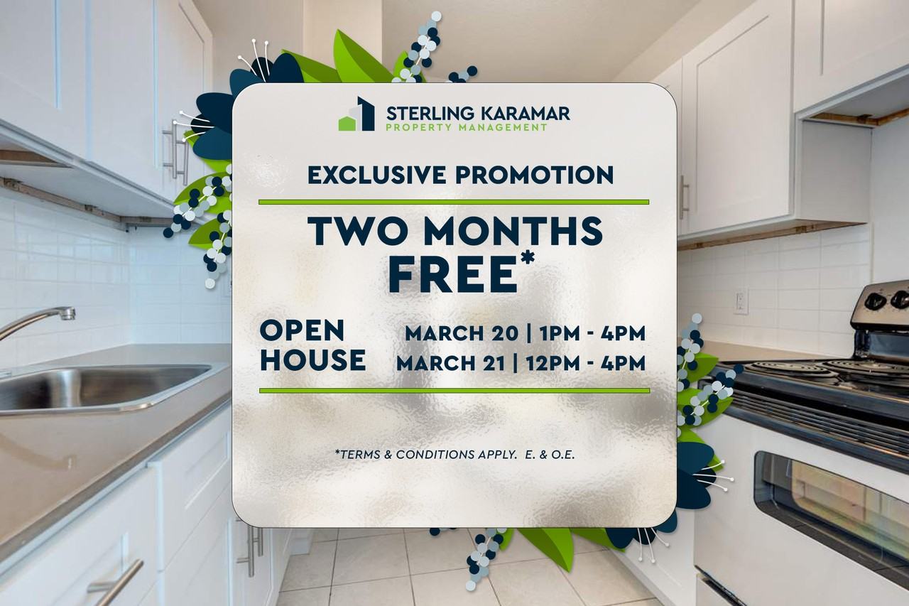 OPEN HOUSE | March 20 from 1:00 pm to 4:00 pm & March 21 from 12:00 pm to 4:00 pm Live in central Oshawa. Located beside Oshawa Centre, Canadian Tire, The Keg, Loblaws, and more. The bus station is located at our main entrance and we are located minutes from the 401/Oshawa GO Station. Find spacious suites, with renovated kitchens, bathrooms, and parquet flooring. Call this amazing Oshawa apartment home. Rental Process We encourage you to schedule a personal showing with our leasing specialist who would be happy to safely tour you through amenities and available suites. Online Payments and Communications Property Vista resident portal is available to ensure the ease of rental payments, maintenance requests, and communication with property management – all accessible online from your personal device. *Pricing, availability, and incentives are subject to change. Conditions apply. Suite features may vary. Images and virtual tours may not reflect actual suite finishes. E. & O.E. ** Sterling Karamar Property Management is committed to providing an exceptional leasing experience. We do not request a fee to book a tour or a deposit to reserve a suite.