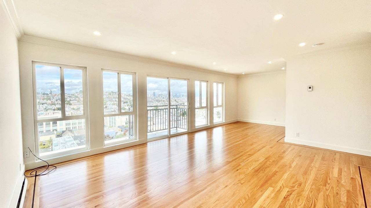 This beautiful 1BD/1BA apartment features huge windows and a private balcony to enjoy panoramic views of the City & Bay! Brand new renovated kitchen comes with all new stainless steel appliances, including dishwasher and microwave hood, gorgeous quartz countertops and plenty of cabinet space. Dining area off the kitchen with plenty of room for a full table. Spacious living room with sliding doors leading to private balcony. In-unit combo washer/dryer for ultimate convenience! Brand-new vanity in bathroom. Ample closet storage space. Gorgeous hardwood flooring and double-paned windows throughout. This property includes a heated pool and BBQ area! It's a 5-minute walk to Whole Foods, the 24th Street (Noe Valley) shopping/dining hub and the tech shuttle stops. I-280 is a 5 minute drive away. Additional amenities of this well-maintained building include onsite manager, coin/card-op laundry room, and elevator. Parking and bike room available for an additional fee. Ask us about our storage move-in special! Well-behaved cats and dogs are welcome with additional pet deposit and monthly pet rent. Dogs require $500 pet deposit + $50/month pet rent + one-time $60 DoggieDNA registration fee to encourage responsible pet waste disposal. Cats require $300 pet deposit + $25/month pet rent. Breed restrictions may apply, per owner's discretion. Utilities include: Water, Trash, Sewer. Tenant responsible for their own metered gas/electric (PG&E). Non-smoking unit. 1 year lease required. This unit is a rental unit subject to the San Francisco Rent Ordinance, which limits evictions without just cause, and which states that any waiver by a tenant of their rights under the Rent Ordinance is void as contrary to public policy.