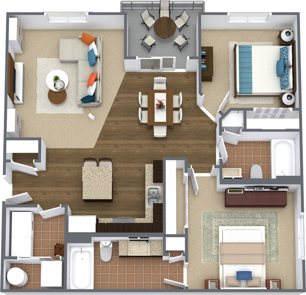 • Private balconies or patios