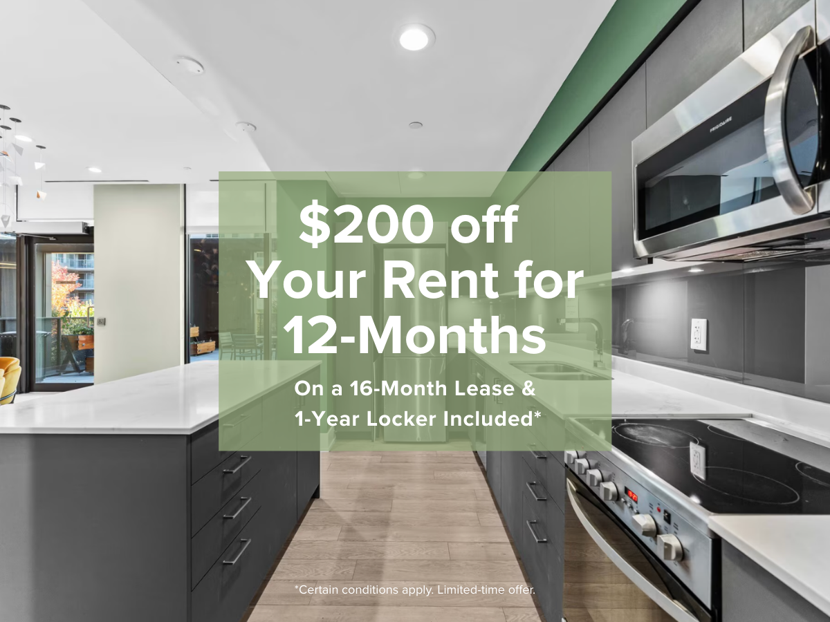 $200 off Your Rent for 12-Months on a 16-Month Lease & 1-Year Locker Included* *Certain conditions apply. Limited-time offer.