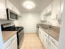 Updated kitchen with tile flooring, granite countertops, and ample cabinetry. Equipped with white appliances including a gas stove, over-the-range microwave, and new dishwasher, plus a sink with a tall-spout faucet.
