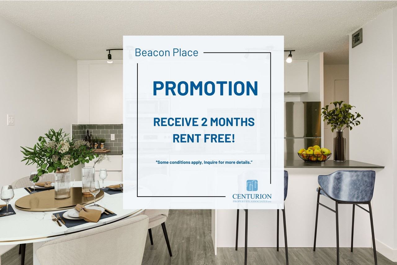 Welcome to Beacon Place, a contemporary mid-rise apartment building located in the heart of downtown Edmonton. Offering an array of studio, one, and two-bedroom suites, this 9-storey residence is conveniently situated just south of Jasper Avenue, the city’s bustling main thoroughfare and public transit hub. Each spacious living area features modern finishes and full-sized appliances, creating a comfortable and stylish living environment. Experience urban living at its finest at Beacon Place! Visit Our Weekly OPEN HOUSE – Every Friday | 9AM–6PM Sign your lease during the Open House and receive $250 move-in bonus – exclusive to Friday tours! PROMOTION: Receive 2 months of rent FREE! *Some conditions apply, please inquire for more details.* "Inquire about our exclusive student offer." Looking for a future move-in date? Give us a call today to speak with one of our Customer Care Representatives to find out more. Current residents, please contact the main office for lease renewal options. Tour Options: - FaceTime & WhatsApp - In Person Suites offers: - Vinyl floors - Modern finishes and mid to full sized appliances - Stainless steel appliances on select suites - All-inclusive utilities - Microwaves in all 1 & 2 bedroom suites - Private balconies for extended living space (select suites) - Only cats permitted Property offers: - Laundry room on each floor - Surface or covered parking options - 24/7 maintenance support - Video surveillance and mobile security - Visitor parking available - Keyless entry - Resident events Your community offers: - Walking distance to public transit - Direct access to Government District, Business District, ICE District, and the scenic Edmonton River Valley - Close to numerous retail, eateries, and entertainment amenities including the City Centre Mall and the Don Wheaton Family YMCA Fees: *Outdoor uncovered parking: $65/month *Outdoor covered parking $70/Month *Underground parking: $85/month *Pet fee: $25/cat/month *Security deposit: $499 *Heat, water, and hydro is included *Storage: $50/ Month Suite images shown represent standard unit finishes, which may differ between units. Suite layout varies.