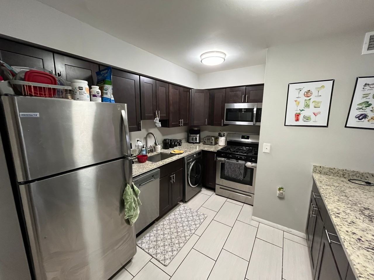 - Stainless steel appliances including washer and dryer