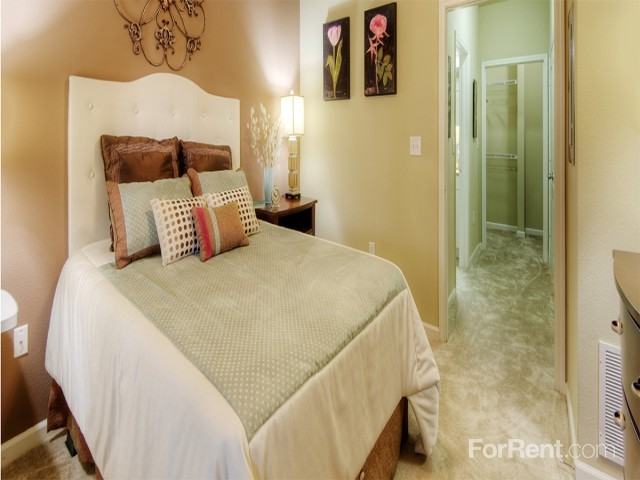 One, Two and Three Bedroom Apartment Homes, Resort Style Swimming Pool with Sundeck, Covered grilling cabana TV lounge and fireplace, Gourmet kitchens with GE Appliances, Private Detached Garages Available, Fitness Club and Business Center, Screened-in Porches in Select Homes, Business Center and Cozy Fire Pit Area, Walk to shopping, dining and entertainment, Call for Great Specials!, Designer Cabinets & Track Lighting, Walk-in Closets, Garden Tubs & Nine-Foot Ceilings. Lease your new "home sweet home" today and receive up to $400 off! *Select apartments only.