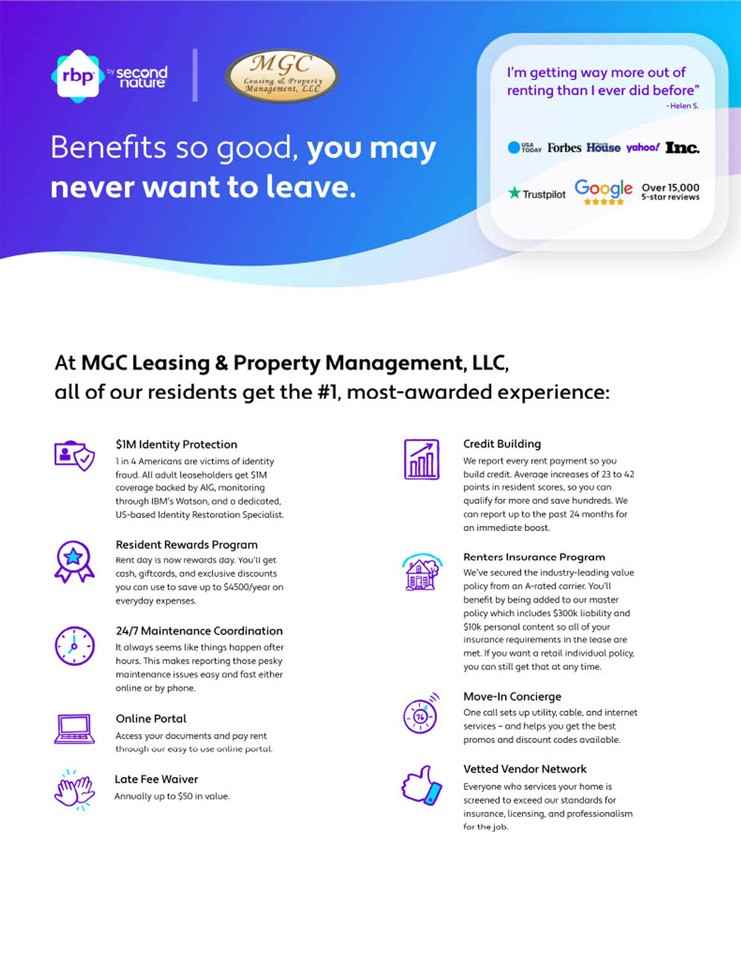 | 2BR/2.0BA | 2 bed | 2 bath | 965 sqft | $1,379 /mo | 2 units available | Brighton Crossing Apartments: Receive a one-time $500 rent credit on select apartments. Ask leasing for details! This first‑floor HCA apartment offers a spacious, modern layout designed for effortless living. The fully equipped kitchen features stainless steel appliances, granite countertops, soft‑close cabinetry, a lower‑level kitchen island, and a generous pantry. LVT flooring extends through the kitchen, living room, and one bedroom, while the second bedroom includes plush carpeting for a softer feel. The home includes an all‑in‑one washer/dryer combo, making laundry simple and efficient without sacrificing space. Both bedrooms offer walk‑in closets, and the two full bathrooms provide flexibility and comfort. The extra‑large HCA primary bathroom includes additional safety bars for enhanced stability. With parking located just steps from your front door, this home brings together thoughtful design and everyday practicality in a location that keeps you close to everything the Northland has to offer. This home is available now for immediate move‑in. Self‑guided tours are currently open. To schedule a self‑guided tour, visit the MGC Leasing & Property Management homepage, select “Schedule a Tour,” and click “Enter Property Yourself.” Applications, additional rentals, community information, and more can also be found at www mgcleasing com • Resident benefits package: $33 month - more details upon application • Some finishes may differ per unit • Pet Policy: Limit 2 Pets Combined weight up to 60lbs • Pet Fee: $500-$750 • Monthly Pet Rent: $40-$65 • Lease Options: 12-month terms available • Pest Control & Trash - $22 a month |