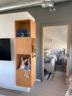 200 State Unit #307 is on the third of four floors, and is one of our highest-end 1 bedrooms. 307 has an extra bump out room of floor-to-ceiling windows with views across downtown, the railroad bridge and the river. The kitchen island extends into the bump out for a custom dining room. 307 has seven windows in total, a 21 foot long by 6 foot wide patio that extends off the side of the building for near panoramic views.