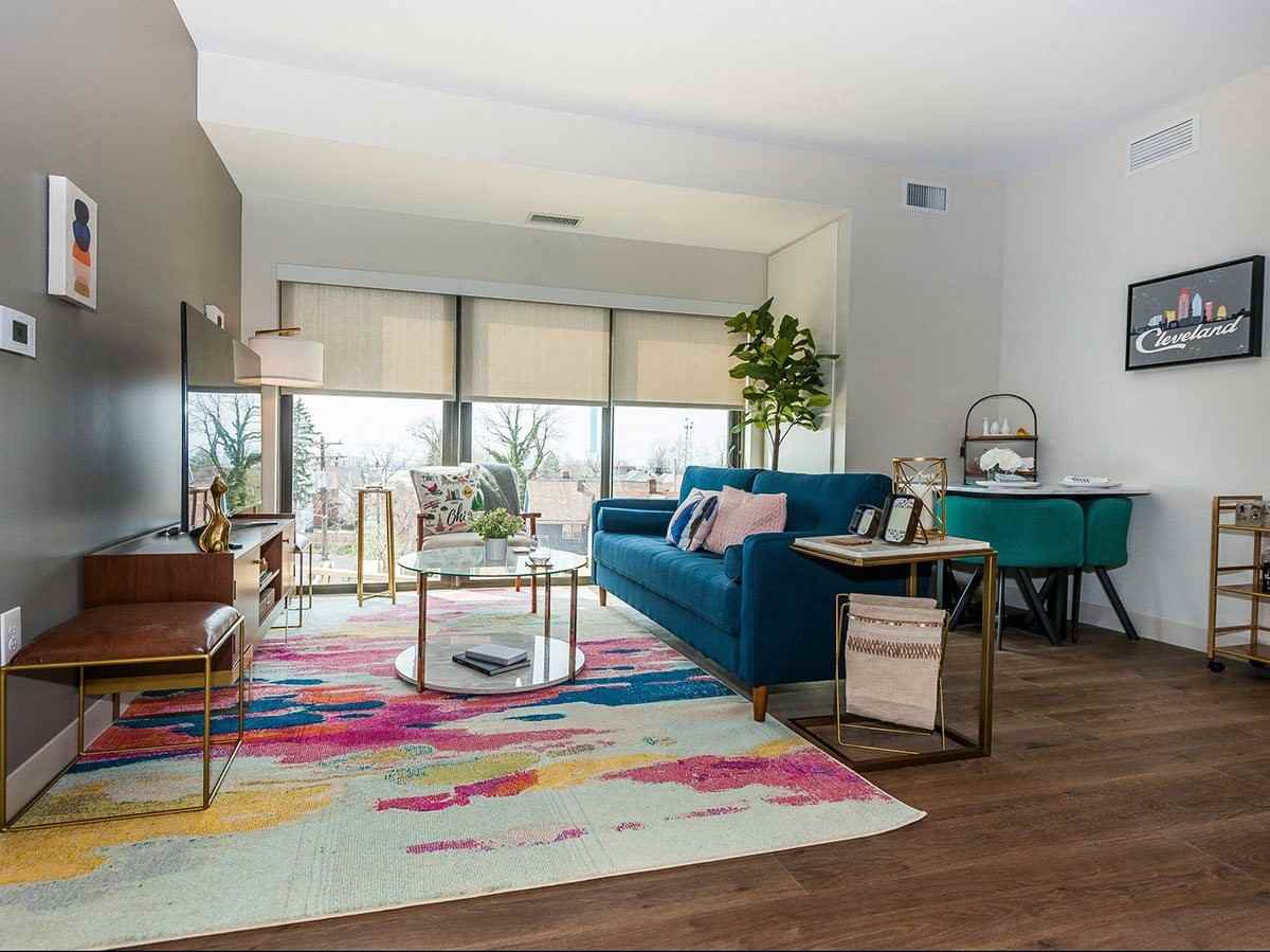 Welcome to 121 Larchmere! These centrally located luxury apartments in Cleveland, OH provide easy access to trendy shopping and major employers like Cleveland Clinic, University Hospitals, and Case Western Reserve University. Offering a variety of pet-friendly studio, one, and two-bedroom apartment homes within 121 Larchmere’s walkable neighborhood. Each sophisticated apartment offers wood-style flooring, floor-to-ceiling windows, modern white shaker cabinetry with tile backsplash, under-cabinet kitchen lighting, granite countertops, stainless steel appliances, and an in-unit washer and dryer. Our community amenities include a 24-hour fitness center, a rooftop resident lounge, resident parking, and a pet play area. If you are interested in living at 121 Larchmere apartments, please contact our professional leasing team to schedule an in-person or live video tour. We cannot wait to show you around!