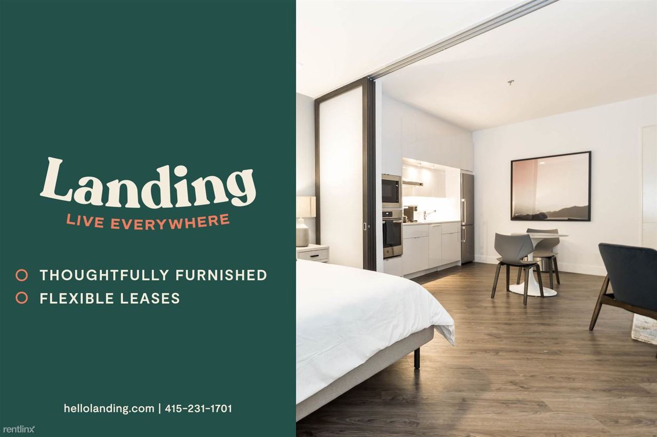 Welcome to Landing! Landing is a network of fully furnished apartments for both short term and long term stay. This is the modern renting experience you are looking for: $0 deposit; flexible leases (month-to-month); designer furnished; 24x7 concierge; pets allowed; utility & Wifi Ready; smart TV; gym & pool. No matter where you land, it’ll always feel like home. Text or call (415) 940-7712 x24 for more information. When you enter your Landing home for the first time, you'll notice the modern tones throughout, from the open concept floor-plan to the perfectly paired with the sleek kitchen with stainless steel appliances. Our included furniture and decor are expertly selected and placed for this individual layout, and the mounted Samsung Smart TVs are ready for your enjoyment. Finally, your home is filled with our convenience amenities from the luxurious bedding to the completely stocked kitchen. Every element of your new home invites you to step right into a hassle-free living experience.