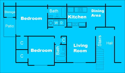 | Downstairs | 2 bed | 2 bath | 1,000 sqft |