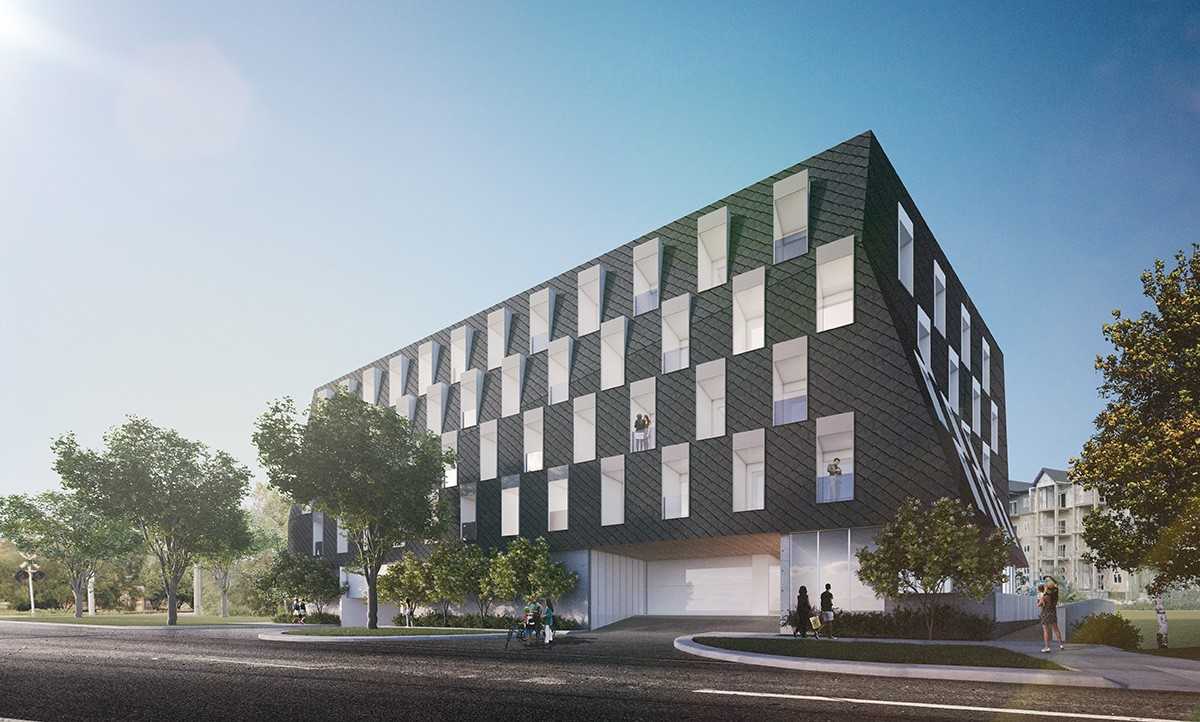 Located at 3435 Pembina Highway near the South Perimeter of Winnipeg, Terrasse Boisjoli is Winnipeg's newest, modern apartment complex. Designed by the award-winning architectural firm, 5468796 Architecture Inc, Terrasse Boisjoli is a bold statement in contemporary architecture and design. Slanted vertical lines and varying angles defy the shape that is stereotypical of everyday apartment blocks. Unique private balconies and white window wells contrast spectacularly with the black façade which shrouds the five storeys of residential units. Grey concrete and glass anchor the structure and house the commercial space of this mixed-use beauty. Terrasse Boisjoli is a construction for 21st century living and beyond. We are pet-friendly! (One cat or one dog is permitted, and the dog must be under 30 pounds, fully grown.)