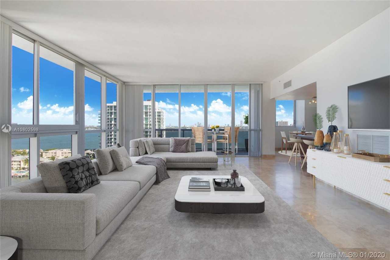 32 FOOT DOCK INCLUDED IN PRICE! - Penthouse corner flow-through unit with 10 foot ceilings and incredible ocean, bay and downtown skyline views. Blue Bay Tower condo has only 35 units total in the building which creates privacy and exclusivity. The rooftop which is perfect for entertaining guests has a pool, gym, sauna, jacuzzi, bbq, sun-deck & spectacular views as well. The building was built in 2005 with all impact glass & is in excellent condition. Low maintenance fee. The unit comes with 2 assigned & covered parking spaces. The flooring is marble and there is a washer and dryer inside the unit. There is a dog park downstairs, a kids playground across the street & the building is pet friendly. Easy to show First, Last and Security upon move in, 24-48 hour courtesy notice for showing requests. Credit and background. Call 786-760-3892
