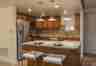 • Kitchen island with counter-top seating, pendant lighting, and additional cabinets