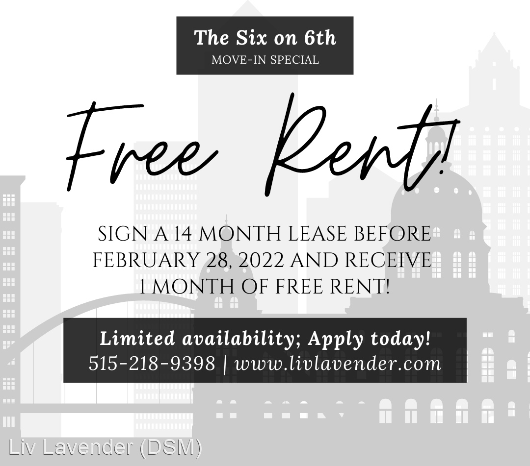 The Six on 6th, Renovated 2nd Floor Unit - Newly renovated 2 bedroom/1 bathroom units located one mile from downtown Des Moines. This complex is conveniently located near the historic East Village and the up and coming Highland Park Neighborhood while still having easy access to the interstate so our residents have access to all that Des Moines has to offer! These units have an open floor plan with a full size, spacious kitchen; spacious closets; and lots of natural light. Here are a few of the updates made during renovations: - New flooring - New bathroom tile - New bathroom vanity - New kitchen cabinets and shelving - New marble design countertops - Open floor plan with kitchen and living room - Freshly painted with new trim Take a look at our prerecorded video tour to see the improvements! https fb watch 35LW65b_KA Rental Details: - Rent: $730 (1st Floor), $720 (2nd Floor), $710 (3rd Floor) - Security Deposit: $730 (1st Floor), $720 (2nd Floor), $710 (3rd Floor) - Application Fee: $35 - Pets are welcomed! No breed restrictions! - $500 one time, non-refundable deposit per pet - $50 recurring pet fee per pet - Gas/Electric utilities need to be set up in the resident’s name Screening Criteria: - Monthly household income is at least 3x the monthly rent - Minimum credit score of 625 - Clean rental history - No criminal history Please reach out to our staff with any questions you may have by calling 515-985-2070. We are dedicated to helping you find your forever home! _______________________ Unidades recientemente renovadas de 2 habitaciones/1 baño ubicadas a una milla del centro de Des Moines. Este complejo estĂ¡ convenientemente ubicado cerca del histĂ³rico East Village y del prometedor vecindario de Highland Park y, al mismo tiempo, tiene fĂ¡cil acceso a la autopista interestatal para que nuestros residentes tengan acceso a todo lo que Des Moines tiene para ofrecer. Estas unidades tienen un plano de planta abierto con una cocina espaciosa de tamaño completo; armarios espaciosos; y mucha luz natural. Estas son algunas de las actualizaciones realizadas durante las renovaciones: - Piso nuevo - Azulejo de baño nuevo - Mueble de baño nuevo - Nuevos gabinetes de cocina y estanterĂas. - Nuevas encimeras de mĂ¡rmol de diseño - Plano de planta abierto con cocina y sala de estar - ReciĂ©n pintado con molduras nuevas. ¡Eche un vistazo a nuestro recorrido en video pregrabado para ver las mejoras! https fb watch 35LW65b_KA Detalles del alquiler: - Renta: $730 (1er Piso), $720 (2do Piso), $710 (3er Piso) - DepĂ³sito de seguridad: $730 (1er piso), $720 (2do piso), $710 (3er piso) - Cuota de solicitud: $35 - ¡Las mascotas son bienvenidas! ¡Sin restricciones de raza! - DepĂ³sito Ăºnico no reembolsable de $500 por mascota - Tarifa por mascota recurrente de $50 por mascota - Los servicios pĂºblicos de gas/electricidad deben establecerse a nombre del residente Criterios de selecciĂ³n: - El ingreso familiar mensual es de al menos 3 veces el alquiler mensual - Puntaje de crĂ©dito mĂnimo de 625 - Limpiar historial de alquiler - Sin antecedentes penales ComunĂquese con nuestro personal con cualquier pregunta que pueda tener llamando al 515-985-2070. ¡Estamos dedicados a ayudarlo a encontrar su hogar para siempre!