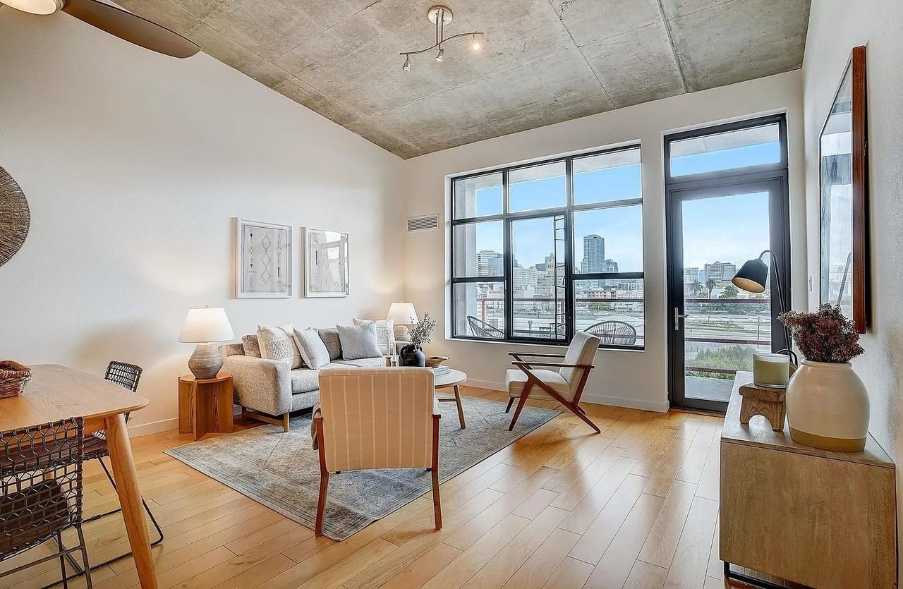 Experience the allure of this stunning 1BR/1BA + den residence located at 288 Third Street, one of Jack London's most sought-after buildings. This rarely available penthouse unit, offers 797 square feet of living space, highlighted by vaulted ceilings, expansive windows, wood floors, and a private balcony providing breathtaking views of Downtown Oakland and the Oakland Hills. Revel in the recently refreshed kitchen and updated bathroom featuring a new vanity and new flooring. The spacious bedroom boasts new carpeting and a generously sized walk-in closet. Additionally, the unit includes a stacked washer/dryer, 1-car garage parking with a bike rack, and an extra storage unit. The building itself showcases a beautiful roof deck complete with a built-in BBQ, offering unparalleled views of both downtown Oakland and San Francisco. Located in the prime Jack London area, this residence is in proximity to some of Oakland's finest restaurants, breweries, and wineries.