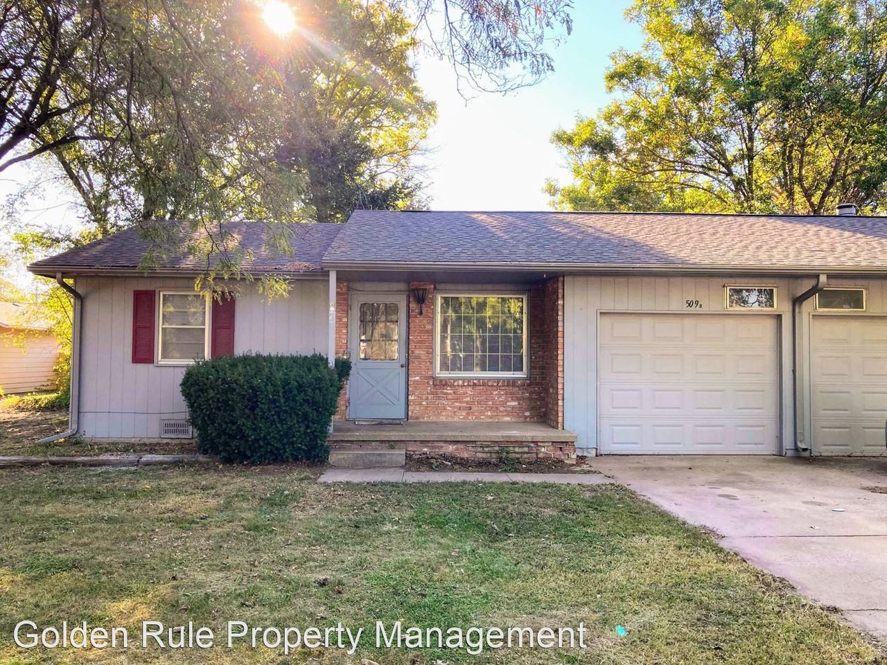 | 509 E 32nd Terrace - B | 2 bed | 1 bath | 820 sqft | 2 bed duplex in nice neighborhood - This 2 bed, 1 bath duplex is nestled in a great neighborhood. New tile in the bathroom shower and also the kitchen back splash. Nice built in cabinets in the hallway for storage. Small privacy fenced section of backyard. One attached car garage. Tenant pays utilities. Central heat and air. Fridge, stove, washer, and dryer provided. Lawncare is tenants responsibility. No Pets! Fill out a free application on our website www grpmrents com and we will consider a showing! Call or text Kelly at 620-920-1120 with questions. -GRPM |