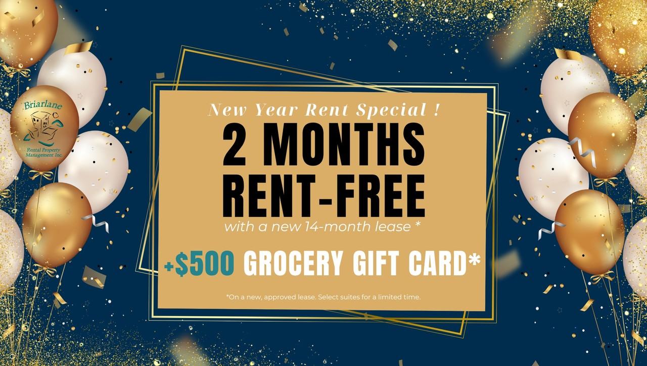 TWO MONTHS RENT FREE + $500 GROCERY GIFT CARD Receive 2 MONTHS RENT-FREE + $500