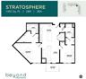 | Stratosphere | 2 bed | 2 bath | 1,160 sqft | Take your living experience to new heights! The 2-bed/2-bath Stratosphere floor plan features an out-of-this world walk-in closet in the main bedroom and a fully dialed kitchen. | ||