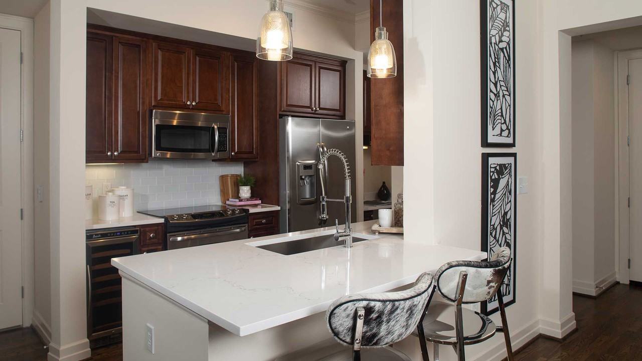 | The Chilton ALT | 1 bed | 1 bath | 1,086 sqft | The Chilton is a unique floor plan that offers a spacious, open living and dining room. The bedroom will easily accommodate a king-size bedroom set and has a generous sized walk-in closet. The bathroom has an ideal set up for guests with a door that divides the area so it can also serve as a powder room. | ||