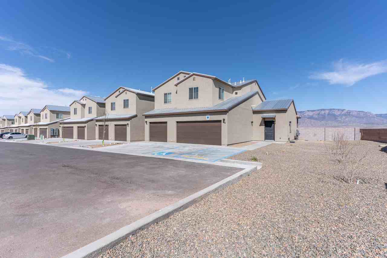 Spacious Rio Rancho Town home with stunning views! Contemporary, fully loaded 2 story floor plan will leave you awestruck. Quality construction and design work offer the perfect marriage of comfort and efficiency. Choose from a couple of different town homes: 2 Bedroom 2 1/2 bath (1,169 SF w/ either a 1 car garage or a 2 car garage ). Large living room provides flexibility and fantastic natural light. Modern open kitchen boasts new stainless appliance package (including dishwasher and microwave hood), granite counters, and quality shaker cabinetry. All bedrooms are spacious with vaulted ceilings, walk-in closets, and en-suite bathrooms. You'll also love the zoned mini-split heating and cooling in every room, the Century Link High Fiber Optic Internet service, the bonus half-bath, the high efficiency washer / dryer set, the attached garage, and one of the most amazing view balconies in the city! Panoramic views of the Rio Grande Bosque, the city, and Sandia. Unit H6 is an end unit with an attached 2 car garage and rents for $2,200 per month. Unit E-2 has a 1 car garage and rents for $2,100 per month. Both are available now. *Photos may be of similar units in the community.